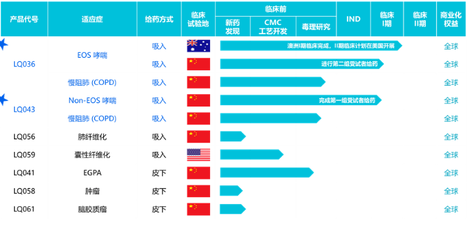 尊龙凯时z6com生物的研发管线中,还包括治疗肺纤维化的LQ056和治疗囊性纤维化的LQ059,同样采用吸入给药。